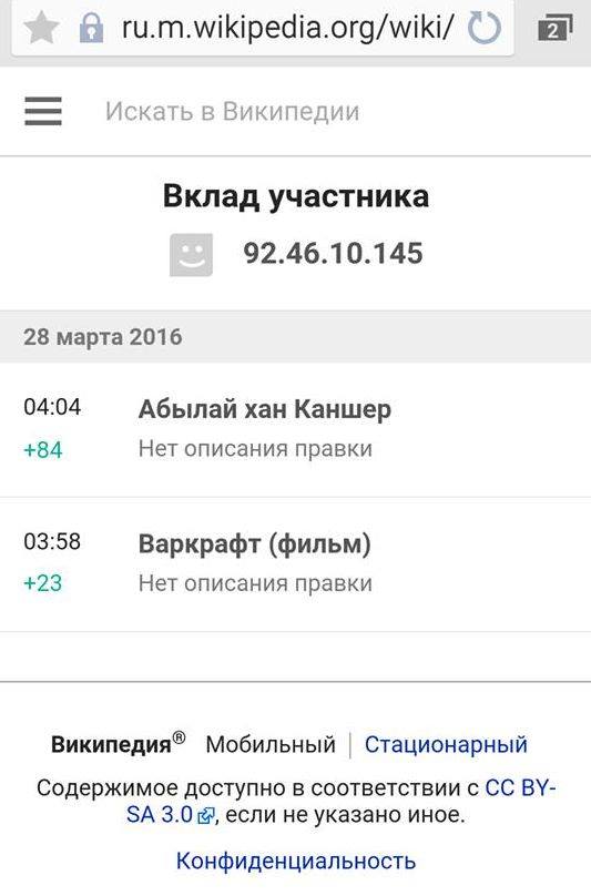 Мақала жарияланған уақытта (01.04.2016 ж., сағат 13.40) жоғарыда аталған жазба өзгертіліп, Абылай ханды қаралайтын сөздердің алынып тасталғаны белгілі болды.