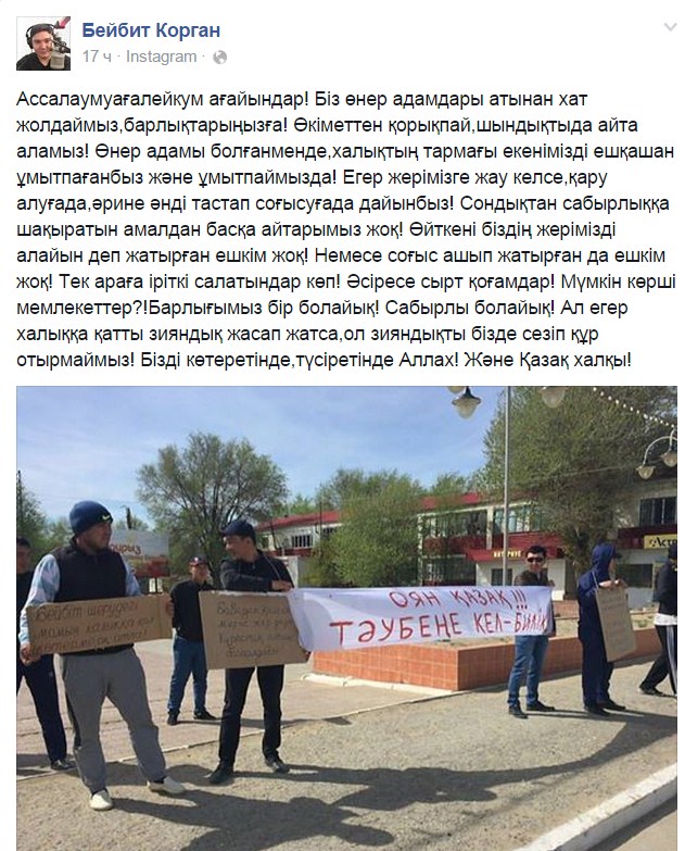 Әнші Бейбіт Қорған бастаған өнер адамдары соңғы кеде қоғамның көп талқылауына түсіп, елдің наразылығын білдірген жер мәселесіне қатысты пікірлерін білдірді, - деп хабарлайды Qamshy.kz.