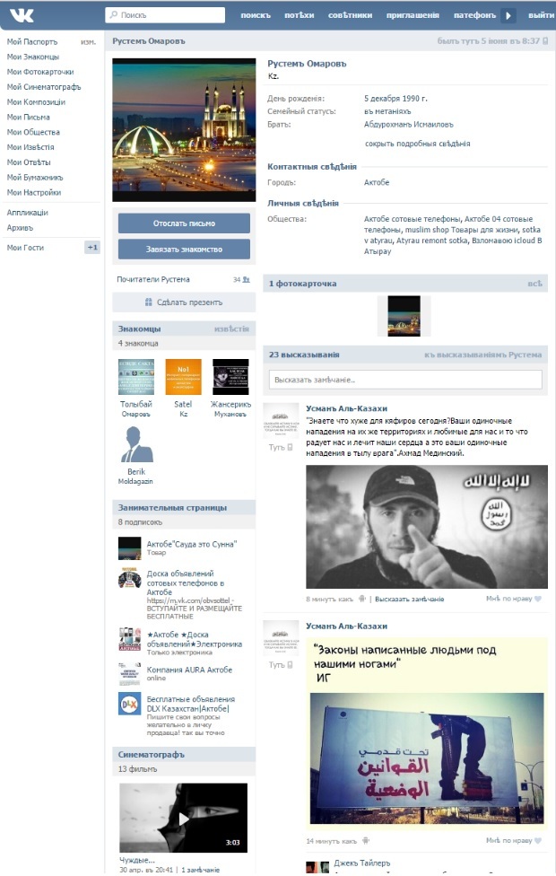 Ақтөбелік лаңкестердің ВКонтакте желісіндегі парақшалары анықтылды , - деп хабарлайды Qamshy.kz yvision.kz сайтына сілтеме жасап.