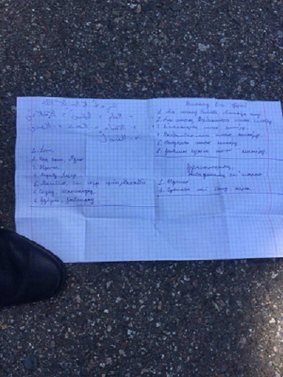 Сонымен қатар, қылмыскердің қалтасынан діни жазулар жазылған парақ табылыпты.