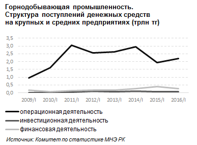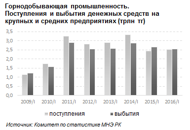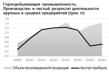 Бір сөзбен айтқанда, ірі және орта шикізат өндірушілердің жалпы табысы төмендеуде. 2016 жылдың қаңтар-наурыз айларында осы саладағы таза табыс 507 миллиард теңгені құраған. Бұл 2015 жылдың бірінші тоқсанындағы көрсеткіштен 15 пайызға жоғары болғанымен, 2011-2014 жылдардың аталған кезеңіндегі деңгейден әлдеқайда төмен.
