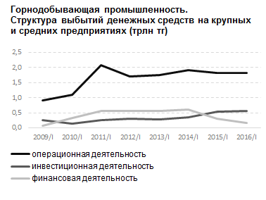 Үстіміздегі жылы тәу-кен өнеркәсібі инвестициялық, операциялық және қаржылық шығындарын жабуға қажет қаржы тапшылығын сезінуде. 2016 жылғы бірінші тоқсан қорытындысы бойынша ірі және орта шикізат өндіруші кәсіпорындардың түсімі шығыстарынан 25 миллиарда кем екенін айтады Finprom.kz сарапшылары.