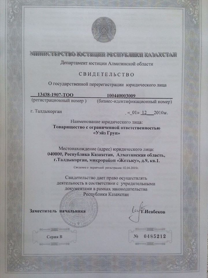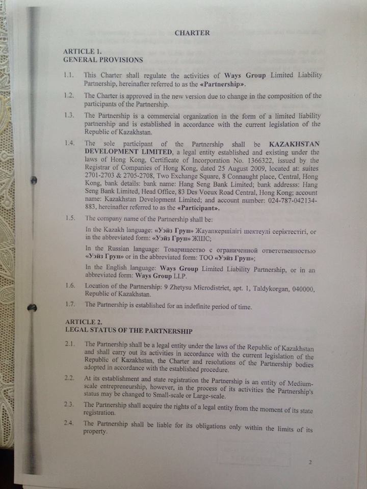 Ал «Уэйз Груп» ЖШС (директоры Хоа Бинь) жалғыз құрылтайшысы Қытайдың «Kazakhstan Development limited» компаниясы. «Kazakhstan Development limited» компаниясының жалғыз құрылтайшысы Джанг Вейдонг (Zhang Weidong) 26.01.1965 ж. т. Гонконг азаматы. G360199725.