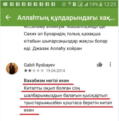 Уаххабист кітаптарын Play Маркет онлайн-дүкенінде Топ-200 –ге енгізілген. Олар өте танымал топта, оларды бәрі біледі, жүктейді және оқиды.