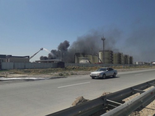 Куәгерлер өртті видеоға түсірген. Олардың айтуынша, желдің кесірінен жалын тез арада шарпып, жарылыстар болған. Ал көрші орналасқан ғимараттың жұмысшылары қауіпсіз жерге жеткізіліпті. Алдын ала мәлімет бойынша, өрт "Мұнай" ЖШС мұнай базасында шыққан. Қазіргі уақытта бензині бар 8 цистернада және сорғы станциясында шыққан өртті сөндіру жұмыстары жүріп жатыр. Шамамен 100-ге жуық адам мен техниканың 20 данасы жұмылдырылған.