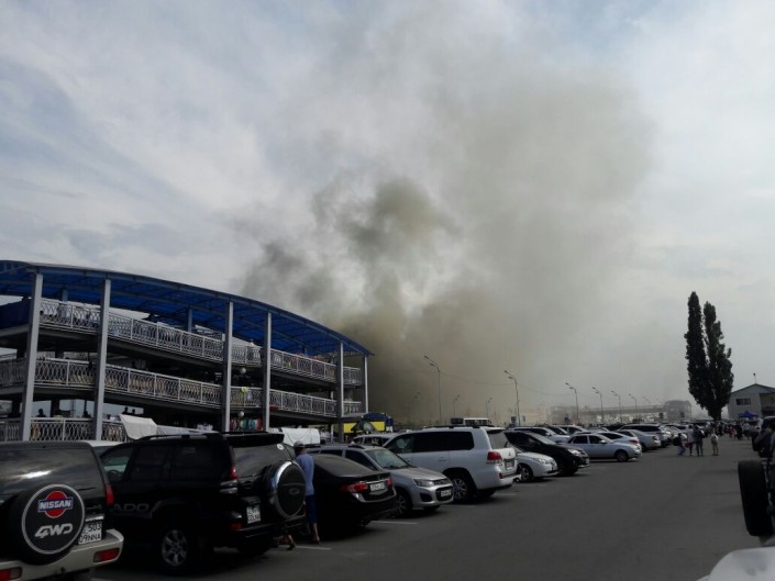 Оқиға куәгерлері өртке оранған базардың фотолары мен видеоларын әлеуметтік желілерге жүктеуде.