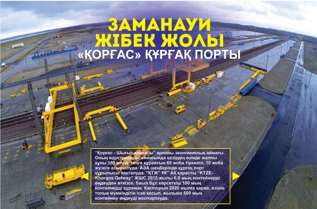 “Қорғас - Шығыс қақпасы” арнайы экономиклық аймағы. Оның идустриалды аймағында қазірдің өзінде жалпы құны 150 млрд. теңге құрайтын 69 жоба тіркеліп, 10 жоба жүзеге асырылуда. АЭА шеңберінде құрғақ порт құрылысы аяқталуда. “ҚТЖ” ҰК” АҚ қарасты “KTZE-Khorgos Getway” ЖШС 2015 жылы 6,9 мың контейнерді өңдеуден өткізсе, биыл бұл көрсеткіш 100 мың контейнерді құрамақ. Кәсіпорын 2020 жылға қарай, өзінің толық мүмкіндігін іске қосып, жылына 500 мың контейнер өңдеуді жоспарлауда.
