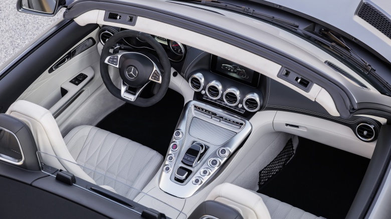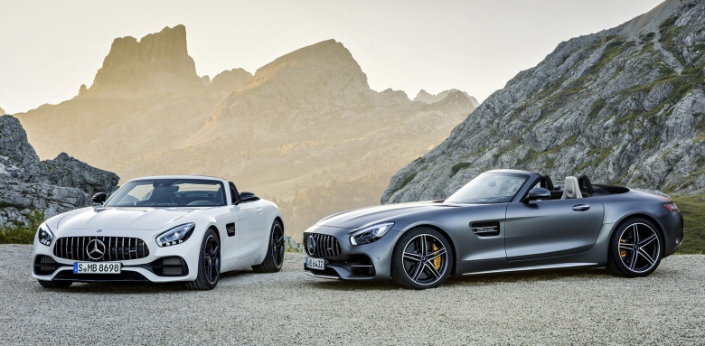 Cнаряженная масса AMG GT Roadster составляет 1595 кг, а GT C Roadster – 1660 кг, т.е. в тех же пределах, что и у машин с жестким верхом. При этом их динамические характеристики оказались даже чуточку выше параметров закрытых аналогов – в частности, 302 км/ч и 4 сек. до «сотни» у GT Roadster и 316 км/ч и 3,7 сек. для GT C Roadster.