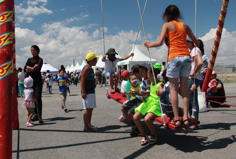 Для того чтобы познакомить иностранных гостей и участников со страной Великой степи, на территории полигона был развернут настоящий этноаул с традиционным бытом, прикладными искусствами и национальными угощениями.