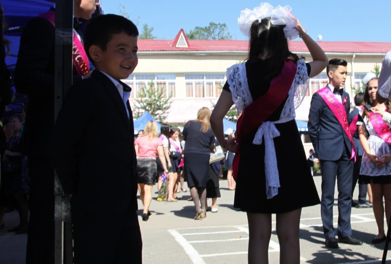 Великолепная погода способствовала тому, чтобы школьники смогли показать на линейке себя во всей красе.