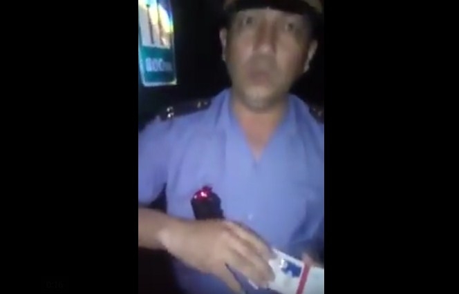 Тілі күрмеле сөйлеген полиция қызметкері өзін "Полиция подполковнигі Батыров" деп таныстырып, жүргізушіге "Әкімшілік құқық бұзушылық туралы" Кодексті түсіндіруде.