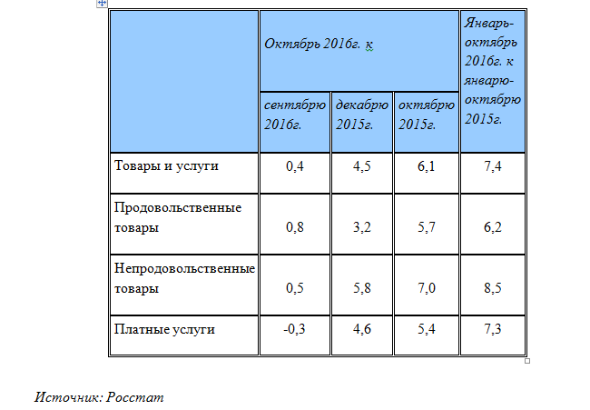 Динамика цен на потребительские товары и услуги в Российской Федерации за 10 месяцев 2016 г.