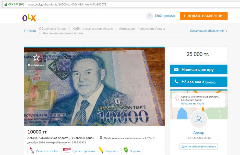 Жаңа он мың теңгелікке қол жеткізгендер түске таман ол қуаныштарымен түрлі әлеуметтік желілер мен форумдарда бөлісе бастаған. Ал, «Ratel» сайты болса аталған банкнотаны интернет пен әлеуметтік желі арқылы саудаға шығарғандардың да бар екенін жазады. Осылайша, адамдардың патриоттық сезімі мен президентке деген махаббатынан да пайда табуды жөн санағандар да жоқ емес. Шамасы олар жаңа ақшаны Ұлттық банк филиалына барып алғаннан, интернет арқылы сатып алуды жеңіл санайтындардың көп боларына сенімді сияқты. Сондықтан да, жарты күн ішінде сатылатын 10 мың теңгеліктерге батыл бағалар бағамы бой түзепті. Әлеуметтік желілер мен интернет-дүкендерде ол әр данасы үшін 15 мыңнан 50 мың теңгеге дейін саудалануда.
