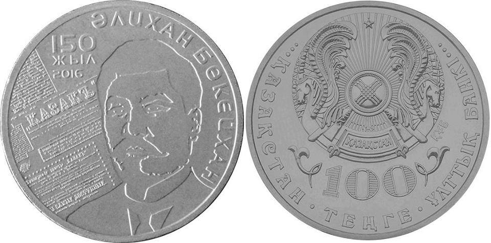 18 қазанда, Астанада Алаш көсемі Әлихан Бөкейханның 150 жылдығына арналған салтанатты шара– Қазақстан Республикасының Ұлттық Банкі шығарған мерейтойлық естелік монета таныстырылды. Монетада жаңа технология мүмкіндігімен «Қазақ» газеті бейнеленген трафарет алғаш рет қолданылған. Монета ҚР ұлттық банкі мен «Ақ жол» демократиялық партиясы бірлесуі нәтижесінде шығарылды. Тиынның жоғарғы бөлігінде ҚР елтаңбасы бейнеленіп, екі беті ұлттық ою-өрнектермен безендірілген. Массасы – 11, 17 грамм, диаметрі – 31 мм, таралымы – 100 мың дана. Сату үшін арнайы термовакуумды қапшыққа оралған.