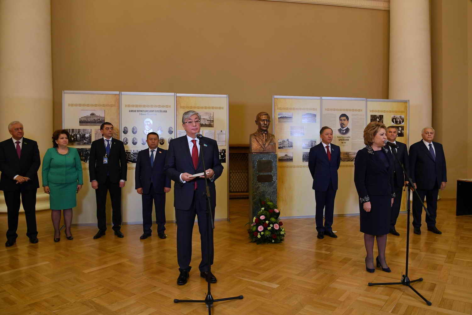 Мүсіннің ашылу салтанатына Сенат Төрағасы Қасым-Жомарт Тоқаев «Қазақстан Тәуелсіздігінің25 жылдығы мен ХХ ғасырдың басындағы көрнекті қазақ зиялысының туғанына 150 жыл толғаны аталып өтетін жылы бюстінің Санкт-Петербургтегі Таврия сарайына орнатылуы ерекше мағынасы бар екенін атап өтті. «Әлихан Бөкейхановтың қызметі биік адамгершіліктің, ұлттық және азаматтық парызына кіршіксіз адалдық пен шынайы берілудің үлгісі болып табылады», - деп атап өтті Сенат Төрағасы.