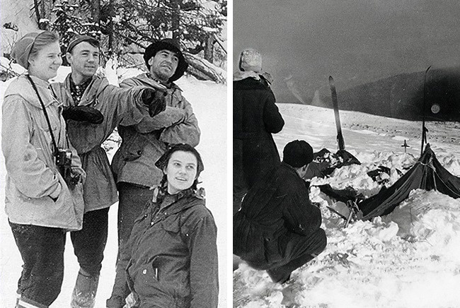 Тарихта ең көп талқыға түскен оқиғалардың бірі. Ол 1959 жылы КСРО-да, қыста орын алған. Тәжірибелі туристтерден тұратын топ таудың басында түнеп жатқан кезде, белгісіз себептермен, жататын орындарын ішінен кесіп, асығыс шығып кеткен. Адамдар жылы киімдерін, тіпті, аяқ киімдерін киместен 1500 метрлік жерден төмен түсіп, мерт болған. Топтағы бірнеше адам ауыр жарақаттанған. Болжамдар: көшкін салдары, топтағы ұрыс-керіс, құпиялы қарудың тексерілуі немесе жергілікті тұрғындармен ұрыс-керіс. Бірақ, болжамдарды дәлелдейтін заттар табылмады.