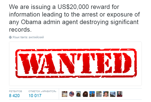 WikiLeaks жобасы АҚШ-тың экспрезиденті Барак Обаманың әкімшілік үйіндегі құжатты ұрлаған адамдарды табуға көмектескен адамға 20 мың доллар көлемінде  сый дайындап қойды деп хабарлайды lenta.ru, мәліметтің қазақша нұсқасын «Қамшы» порталы оқырман назарына ұсынады.