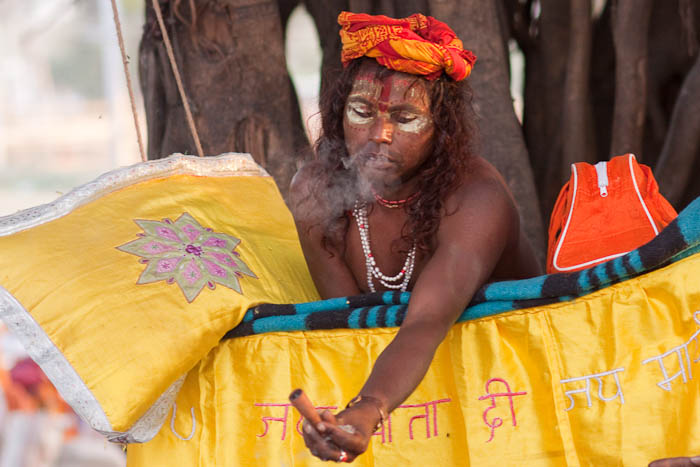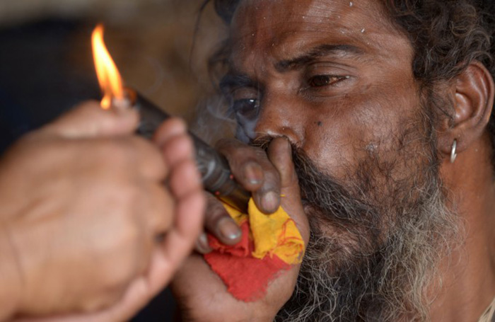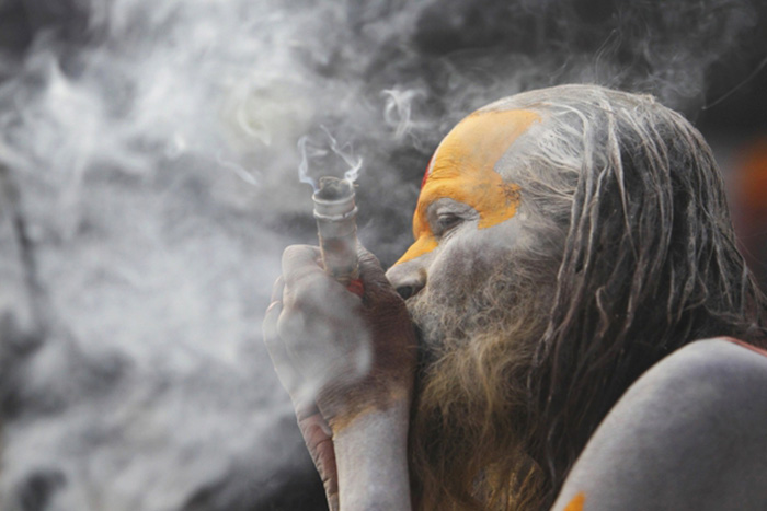Үндістанда жүріп, жалғыз немесе топ құрған адамдардың жиналысын көруге болады. Құдайға арнап мантра оқып жатып, темекі иісіне ұқсас түтікшелерді шегіп отырады.