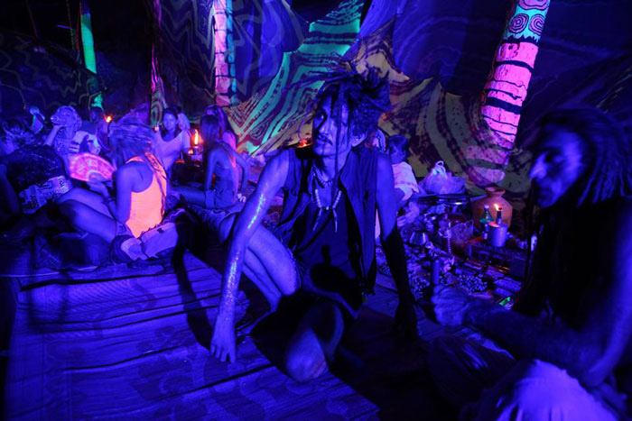 Үндістанда марихуанадан басқа психотропты есірткілерді арзан бағада көшелер мен атақты трансты кештерде оңай қолға түсіруге болады. Трансты кештер көбінесе Гоа штатында өтеді. Оны жергілікті полицейлермен қомақты ақшаға келісіп өткізеді. Мұндай сауық кешті өткізетін адамдар бейресми түрдегі, хиппи мен фрики киіміндегі адамдар. Олар түні бойы гипностикалық трансты әуендерге билейді. Демалу орны ретінде матрастар қарастырылған. Ол жерде үндістандық әжейлер шәй қайнатып, дәмдеуіш қосылған шәй сатады. Кешті шыбынжұт түріндегі суреттер, басқа планеталық болмыстар әрлейді.