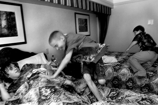 Ауырғаны уақытша сезілмеген сәтте Дерек шаттанып қоя береді. Бұл суретте ол бауырларымен ойнап жатыр.