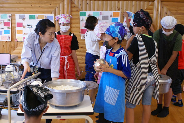 Тамақ мектептің ішінде жасалады. Ыдыс-аяқ мектеп тарапынан берілгенімен, оқушылар таяқша мен сүлгіден тұратын тамақтануға арналған жинақты өзімен алып келуі тиіс.