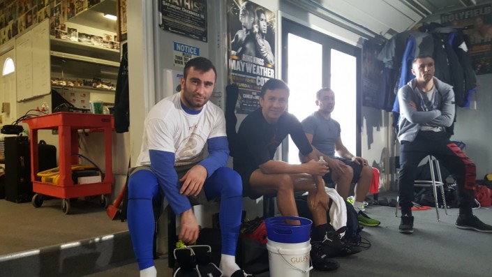 Америкалық танымал журналист Стив Ким (UCNLive) Головкин жаттығып жатқан The Summit залына барды. Twitter желісіндегі парақшасында ол қазақстандық боксшының жаттығуынан суреттер жариялады.