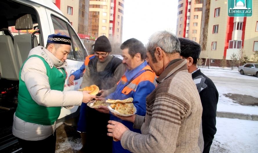 Міне, осындай еңбекқор топқа «Нұр Астана» мешіті қызметкерлері бүгін таңғы ыстық ас пен қою күрең шәймен сый жасады. Игілікті шарада Д.Қонаев, Мәңгілік ел және Қабанбай батыр көшелері бойында жұмысқа жұмылдырылған 90 адам қамтылды. Өз кезегінде дін қызметкерлерінің ізет-құрметіне тазалықшы топ риясыз алғыс-тілектерін арнады.