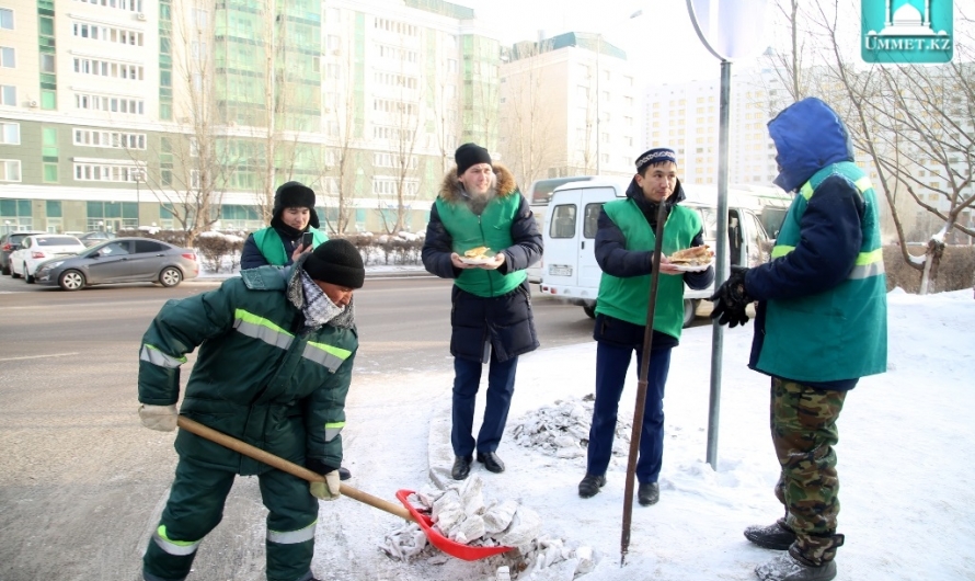 «Нұр Астана» орталық мешіті Астана тазалықшыларына арнаулы шара ұйымдастырды. Бұл шара елорда әкімдігінің «Астана – мейірімді қала» акциясы аясында көрікті қаламыздың ажарын арттырып, шырайын кіргізген, ен бойына қылау жұқтырмай жан аянбай еңбек етушілерге қолдау көрсетіп, көңілдеріне демеу білдіру мақсатында қолға алынған. Әсіресе, алты айлап қысқы ызғар мен қалың қар жауған аралықта қала тазалықшыларының қызметі қызады.
