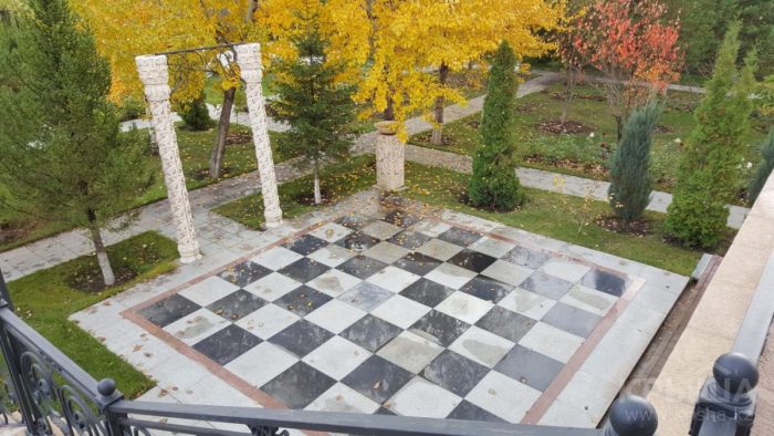 Зәулім сарай Астанадан сәл қашықтықта жатқан Саранда тұрғын үй кешенінде орналасқан.
