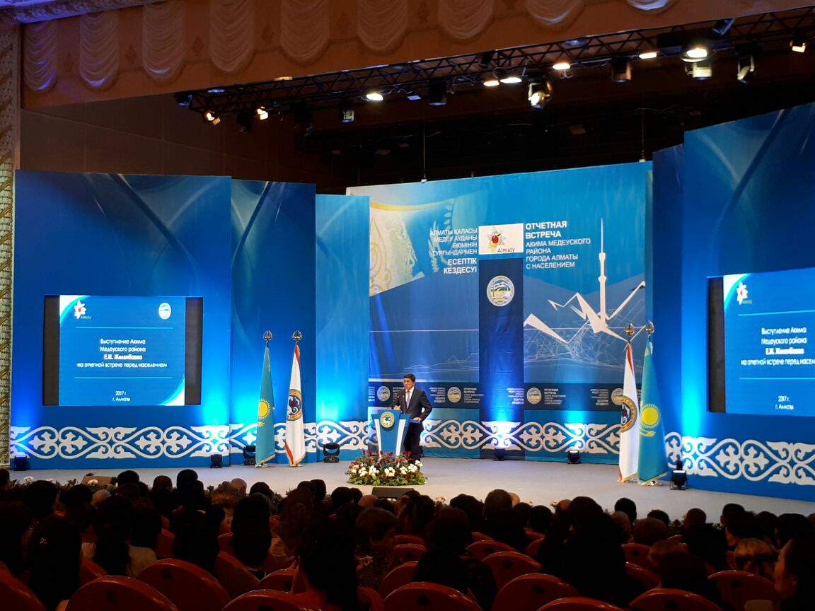 2017 жылы 13 ақпанда Медеу ауданының әкімі Ержан Жылқыбаевтың 30 округ тұрғындарымен есептік кездесуі болып өтті.