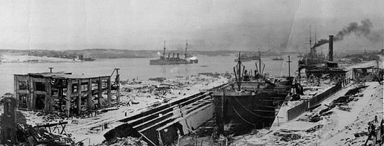 1917 жылдың желтоқсан айында Галифакс қаласында «Монблан» әскери кемесі «Имо» кемесімен соқтығысып қалды. Қатты жарылыс болғаны соншалық қаланың жартысын қиратып тастаған. Себебі «Монблан»-ның ішінде толған жарылғыш заттар болған. Екі мың адам қайтыс болды. Тоғыз мыңы жарақат алды.