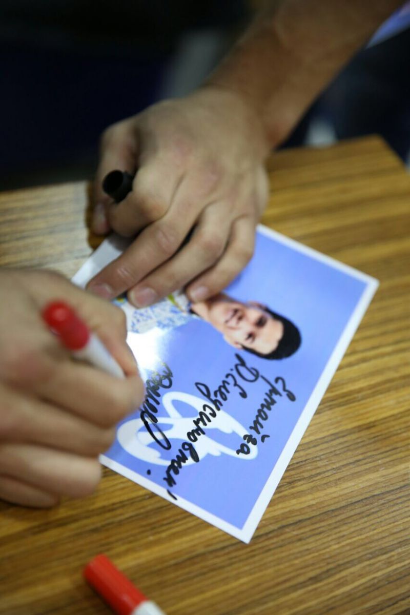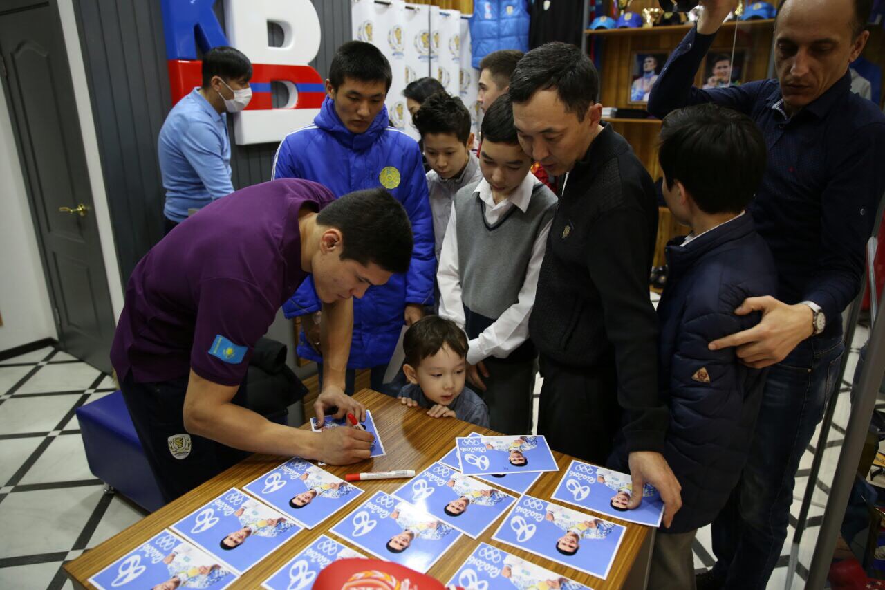 Спортшының қолтаңбасын алып, ақ жол тілеуге көптеген жанкүйерлері келген.