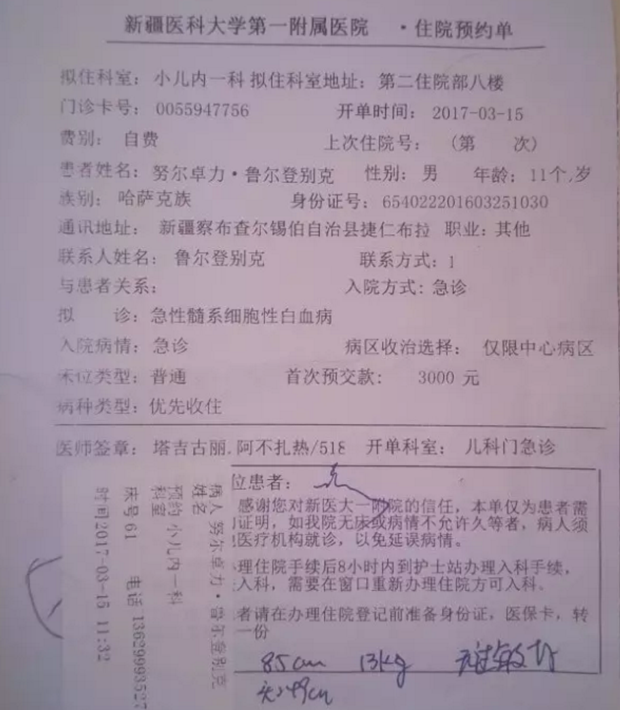 Ауру айтып келмейді дейді. Қиындық басқа түскенде өмірден түңілетін кездеріңіз болатын шығар. Бірақ үміт бар жерде болашақ та бар. Жақында балам тұйықсыз ауырып, Құлжадағы ауруханалардың біріне апарғанымызда олар баламның диагнозы аққан ауруы болуы мүмкін екенін айтып, нақтылау үшін Үрімжіге жіберген болатын. Үрімжідегі «Медицина 1» ауруханасы балама «жедел характерлі шеміршек аққан ауруы» деп диагноз қойды. Тек қана химиялық жолмен емделеді екен. Нәтижелі болып жатса сүйек майын ауыстырмақшы. Бір жас отбасының материалдық жағдайы қазір қаншалықты болатыны белгілі. Емдеу ақысы өте көп қаржыны талап етеді.