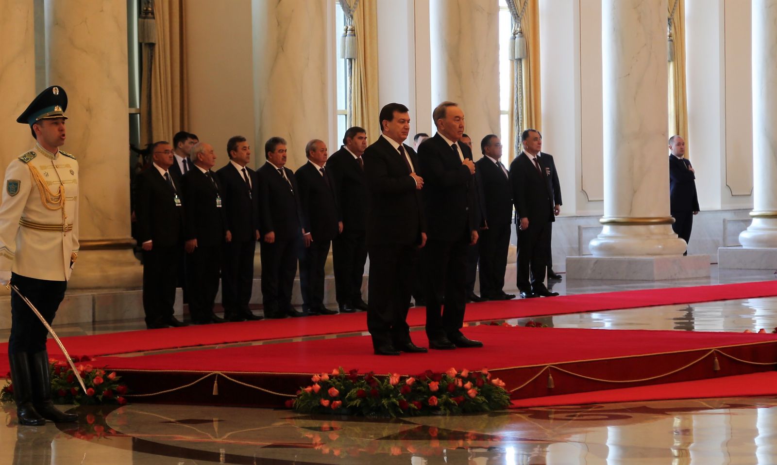 Президент Назарбаев Өзбек басшысын зор салтанатпен қарсы алды.