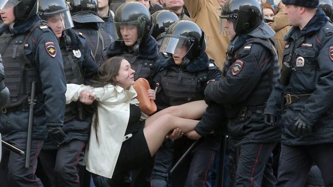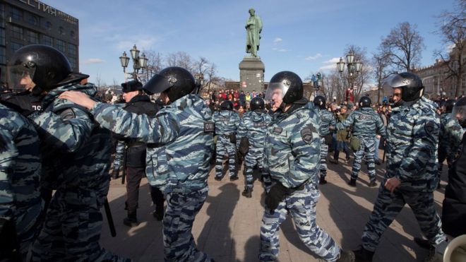 26-шы наурызда Ресейдің бірнеше қаласында жемқорлыққа қарсы акция өтті. Полиция жүздеген адамды ұстады деп хабарлайды bbc.com.