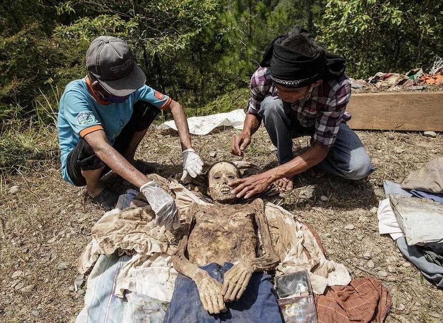 «Мәйітті тазалау» рәсімін Индонезиядағы Сулавеси аралының тұрғындары жүз жылдан бері атқарып келеді. Арал тұрғындары аталмыш рәсімді орындауға шынайы ниетпен кіріседі. Мәйіттерге жаңа, әдемі киімдер кидіріп, отбасылы суреттерге түсіп, оларды арнайы байқауларға жібереді.