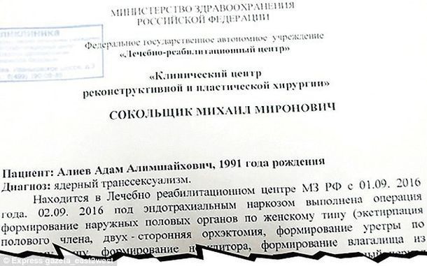 25 жастағы Адам Мәскеу қаласына жұмыс барысымен кеттім деп, өз жынысын ауыстыру үшін операция жасайды. Ол өзінің Виктор атты ғашығы үшін жынысын ауыстырған. Қос жұп Дағыстанда тойларын жасап та үлгерген. Осы тойдан кейін әкесі тележурналисттерге былай деп сұхбат береді: «Мейлі, өлтіре берсін. Осында алып келіп, менің көзімше өлтіріңдер».