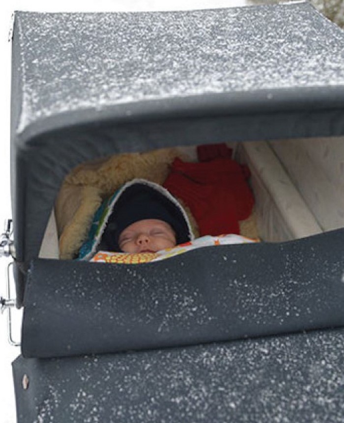 Скандинавиялықтар үшін 20 градус суықта баламен далада қыдырып жүргені қалыпты жағдай. Суық жел, қалың қар, ызғарлы ауа-райы бала үшін ыңғайлы ауа-райы емес. Алайда Скандинавияда суықта ұйықтаған балаға пайдалы деп есептейді.