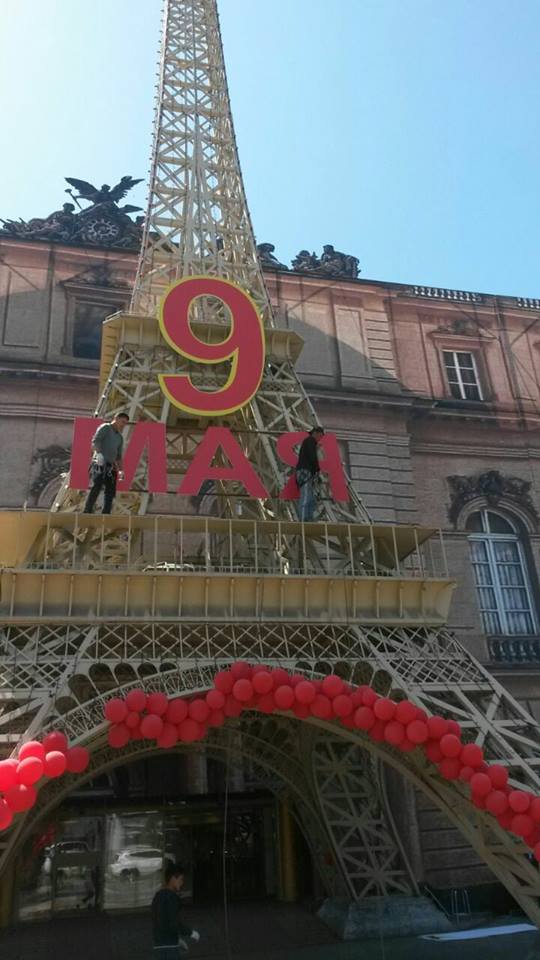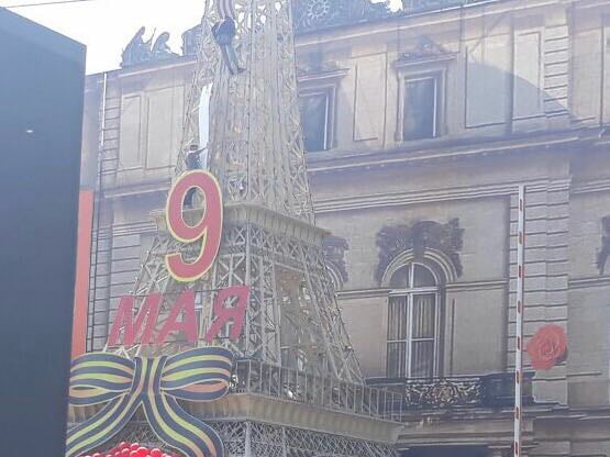 Не керек, кей мекемелердің басшылығы мұндай шешімге аса мән бермеген болу керек. Абай мен Фурманов көшелерінің қиылысыныдағы Француз үйінің басшылығы Эйфель мұнарасының алдына жарқыратып Георгий лентасын іліп қойыпты. Бұл нені білдіреді, әлі де Ресейдің ығына көніп, ел тәуелсіздігін мойындамаудың белгісі ме? Абырой болғанда, мұны қала әкімдігі байқап, дереу алып тастауды бұйырған. Бүгінде ғимарат алдында "Георгий" лентасын алып тастау жұмыстары жүрігізілді.