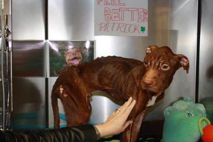 Ол мұншалықты қорланған итті өмірінде бірінші рет көргенін жасырмады. Оқиға орнына жеткен құтқарушылар иттің жағдайын көргенде таң қалғандарын айтады. Итті қарап шыққан ветеринар оны қинамай өлтірген дұрыс деп ойлаған, алайда питбульдің аянышты көзқарасы оның шешімін өзгерткен. Құтқарушылар итті Патрик деп атап, азып-тозған жануарды күре тамыры арқылы тамақтандырған. Жағдайын қалпына келтіру үшін құтқарушылар тобы барын салған. Алайда, қиындық келтіргені- әу баста иттің асқазаны тамақты қабылдай алмаған. Тамақты иттің ағзасына тамыр арқылы құйған. Суықтан дірілдеп, қатты тоңған иттің терісіне жаралар қаптап кеткен еді.