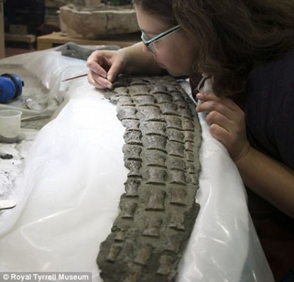 Бұл динозаврдың тас болып қалған денесі ескерткіш секілді өте жақсы сақталған.