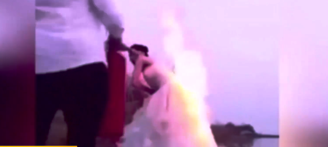 Фотограф қалыңдықтың көйлегін өртегеннен кейін тезірек суретке түсіріп үлгерген. Аз уақыттан кейңн қалыңдықтың көйлегі түгелдей дерлік жанып кетті. Қалыңдықты өрт сөндіргіштің көмегімен құтқарып алған.