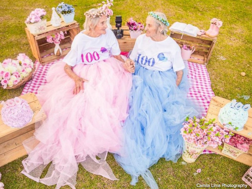 28 жастағы Бразилиялық фотограф Камила Лима 100 жастағы егіз әжейлер туралы естіген. Лима Марии және Паулине есімді егіз әжелерге романтикалық фотосессия жасауға ұсыныс жасаған, деп хабарлайды Қамшы ақпараттық агенттігі.