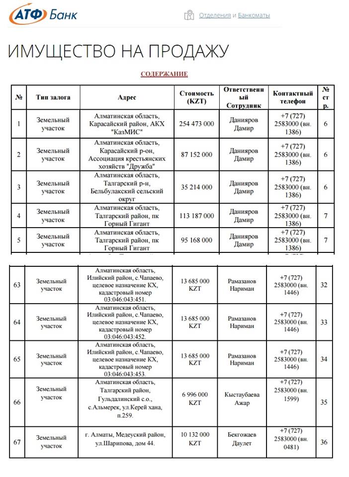 Тек бір ғана АТФ банктың сайтында осы жылы тек Алматы қаласы мен Алматы облысы бойынша 67 жер учаскесі сатылымға шығыпты. Ал Ұлттық банктің мәліметі бойынша Қазақстанда екінші деңгейдегі 33 банк бар екен. Олардың әрқайсысында қанша жердің кепілге қойылып, жылдар бойы қаншасының сатылғанын, оның қаншасын шетелдіктердің сатып алғанын ешкім білмейді, білсе де айтпайды. Бір банк бір жылда әртүрлі көлемдегі 67 жер учаскесін сатылымға шығарса арғы жағын өзіңіз бағамдай беріңіз.