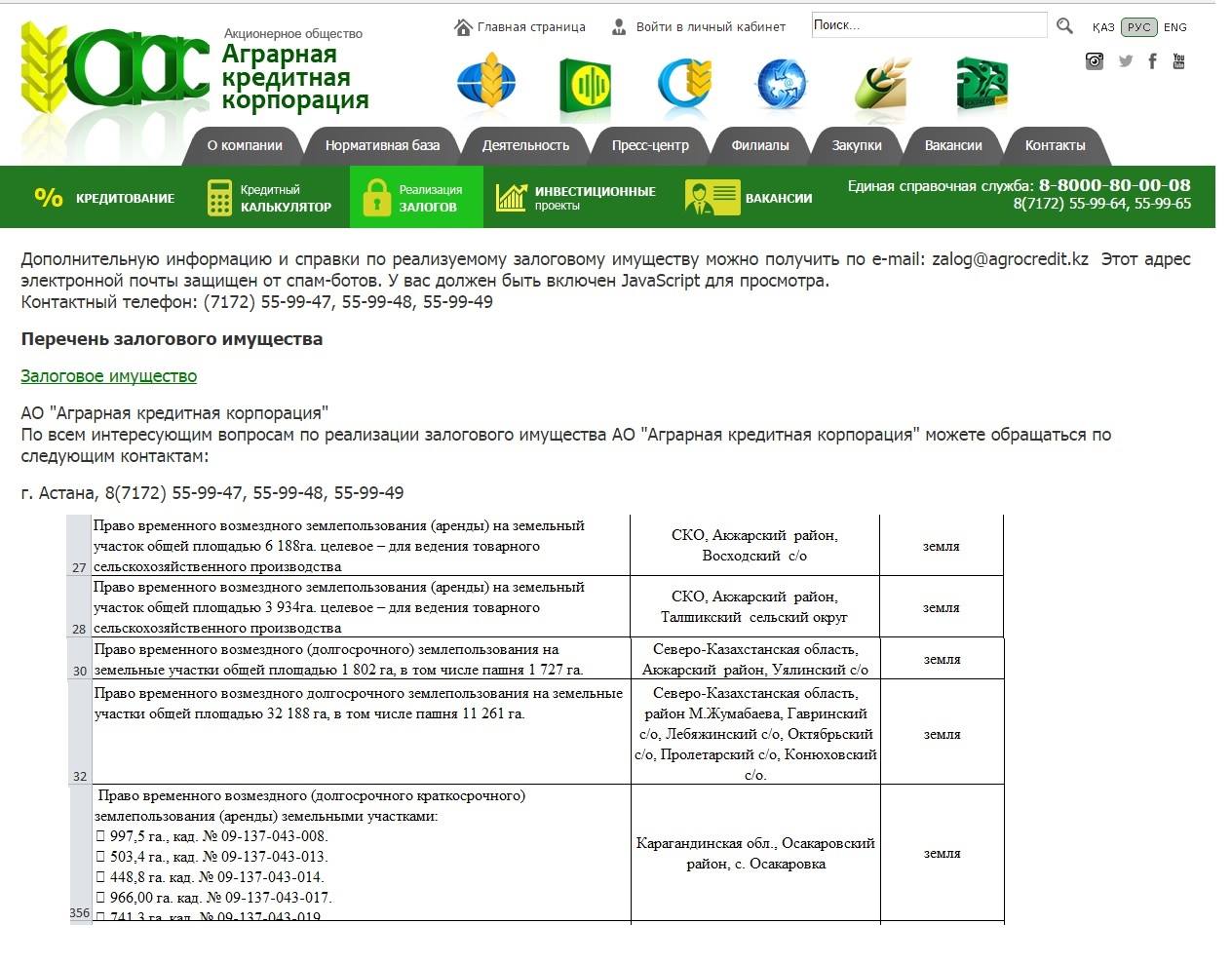 Екінші жолы, «Қазагро» ұлттық компаниясы мен оның еншілес компаниялары жыл сайын несие алып, қайтара алмағандардың кепіл мүлкін саудаға шығарады. Ол жерде тек отандық компаниялар немесе азаматтар алсын деген талап жоқ. Кімнің ақшасы бар, сол ала береді. Солардың бірі «Аграрная кредитная корпорация» АҚ сайтында жарияланған кепіл мүліктерге көз жүгіртсеңіз, жалпы сатылымға шыққан мүліктің жартысына жуығы ауылшаруашылық жерлері екенін байқайсыз. Оның ішінде 10 сотыдан бастап, 32 мың гектарға дейін сатылымға қойылған жерлер бар екен. Ол жерлерді сатып алғандардың ішінде шетелдіктердің де болуы әбден мүмкін.