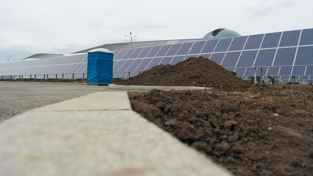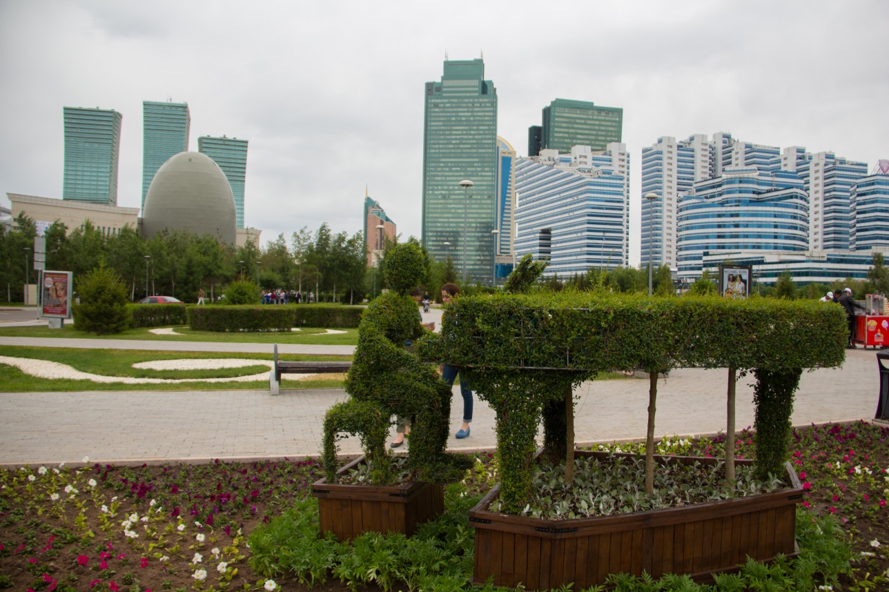 ЭКСПО көрмесінде цемент, әйнек, шыны мен асфальт көп. Алайда жасыл шөп ара-арасында қарасын көрсетеді. Астанаға келген қонақтар жасыл аймақты көргісі келсе орталық саябақтарға барғаны жөн.