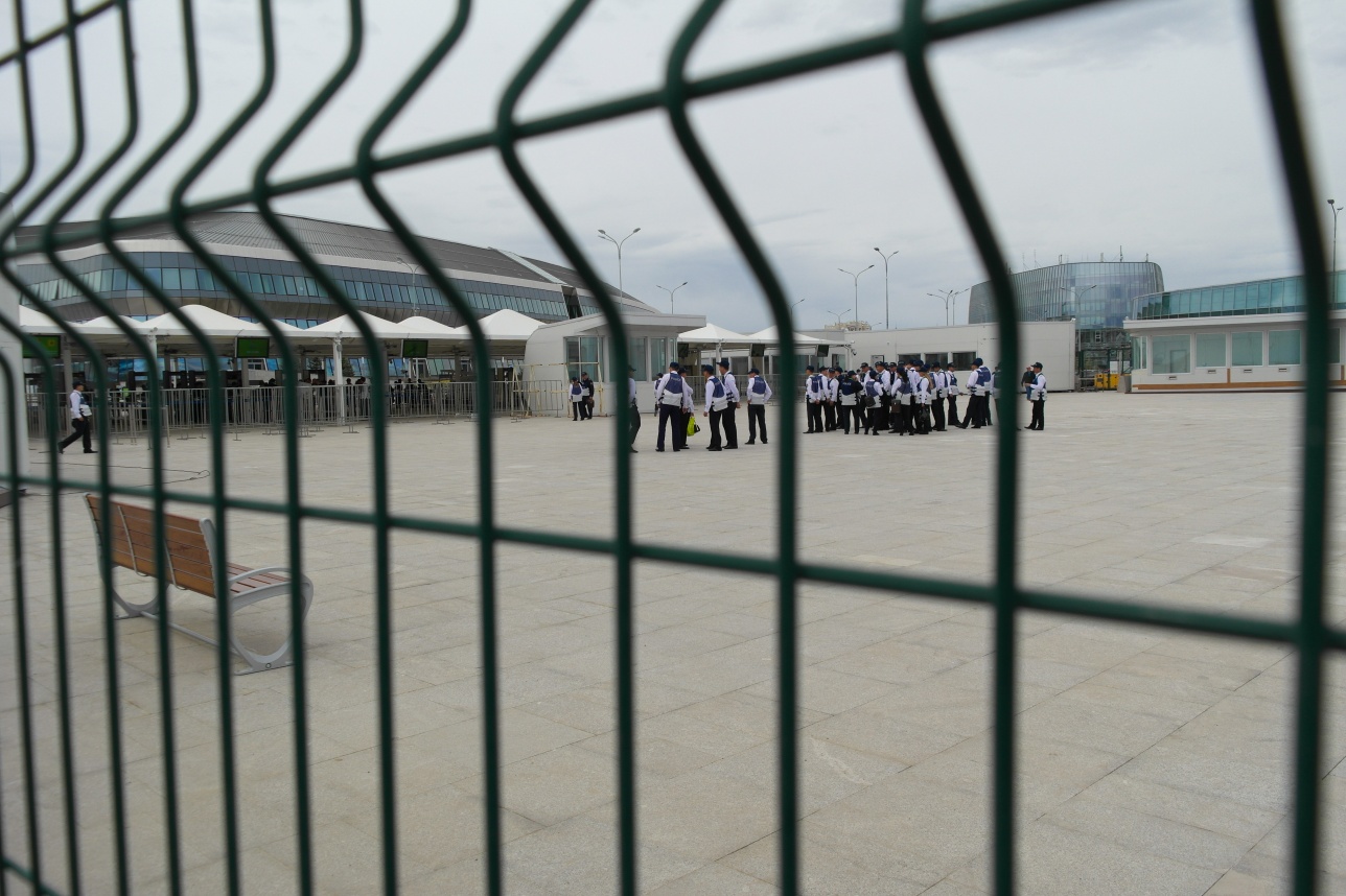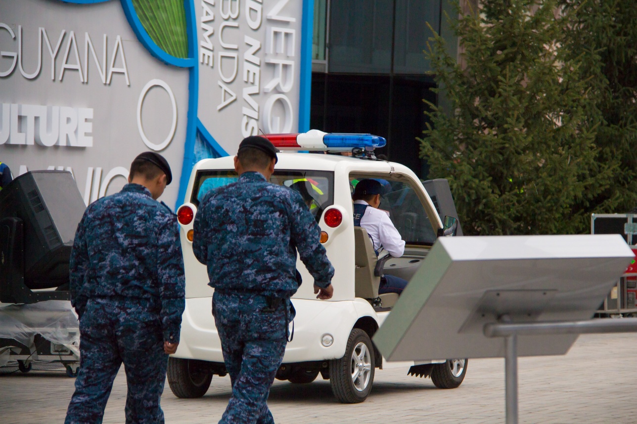 Қала іші мен көрме маңы ерекше режімдегі күзетпен қорғалуда. Полиция қызметкерлері мен Ұлттық ұлан сарбаздарының қарасы көбеюде.