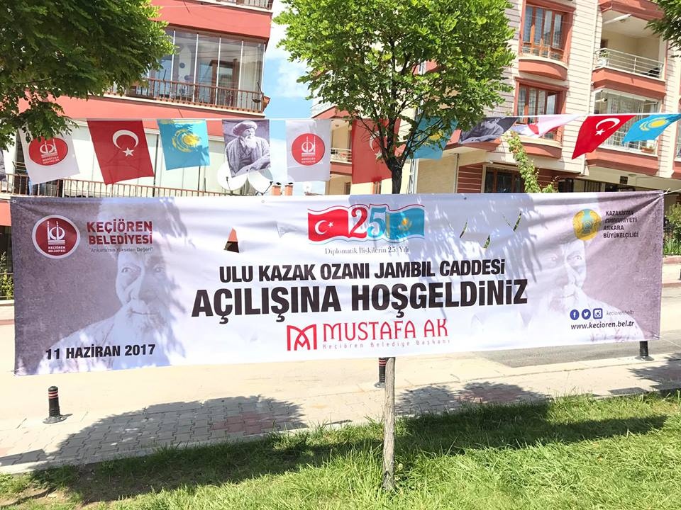 Қазақтың ұлы ақыны Жамбыл Жабаев есімі Кечиорен ауданындағы Анкараның басты көшелерінің біріне берілген. Бұл көше қазақтың суырып салма ақыны Сүйінбай Аронұлының атына берілген саябақтың жанында орналасқан. Қазақстан мен Түркия арасындағы дипломатиялық қарым-қатынастың орнауына 25 жыл толуына орай көшеге Жамбыл Жабаевтың есімі берілді.