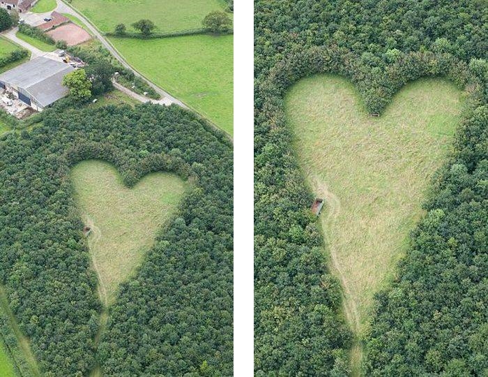 Кәдімгі орманның ортасында жүрек екшеленген. Жүрек ортасында нарцисттар өскен екен. Мүмкін Уинстон бұл көріністі сүйіктісі жоғарыдан байқап, көрсін деген шығар...