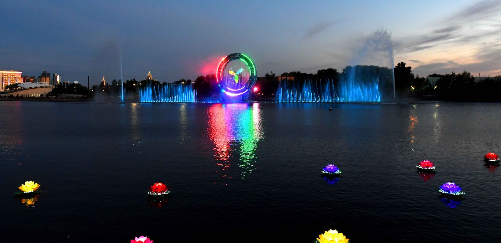Соңында Нұрсұлтан Назарбаев Есіл өзенінің жағасында лазерлік шоуды тамашалады.